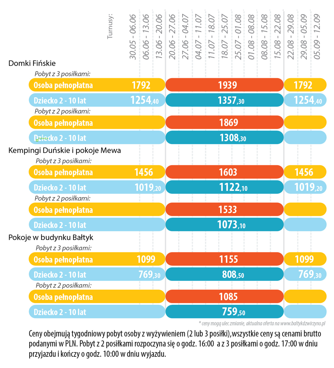 dziecko 2-10 lat (wspólne łóżko): 50% ceny osoby pełnopłatnej