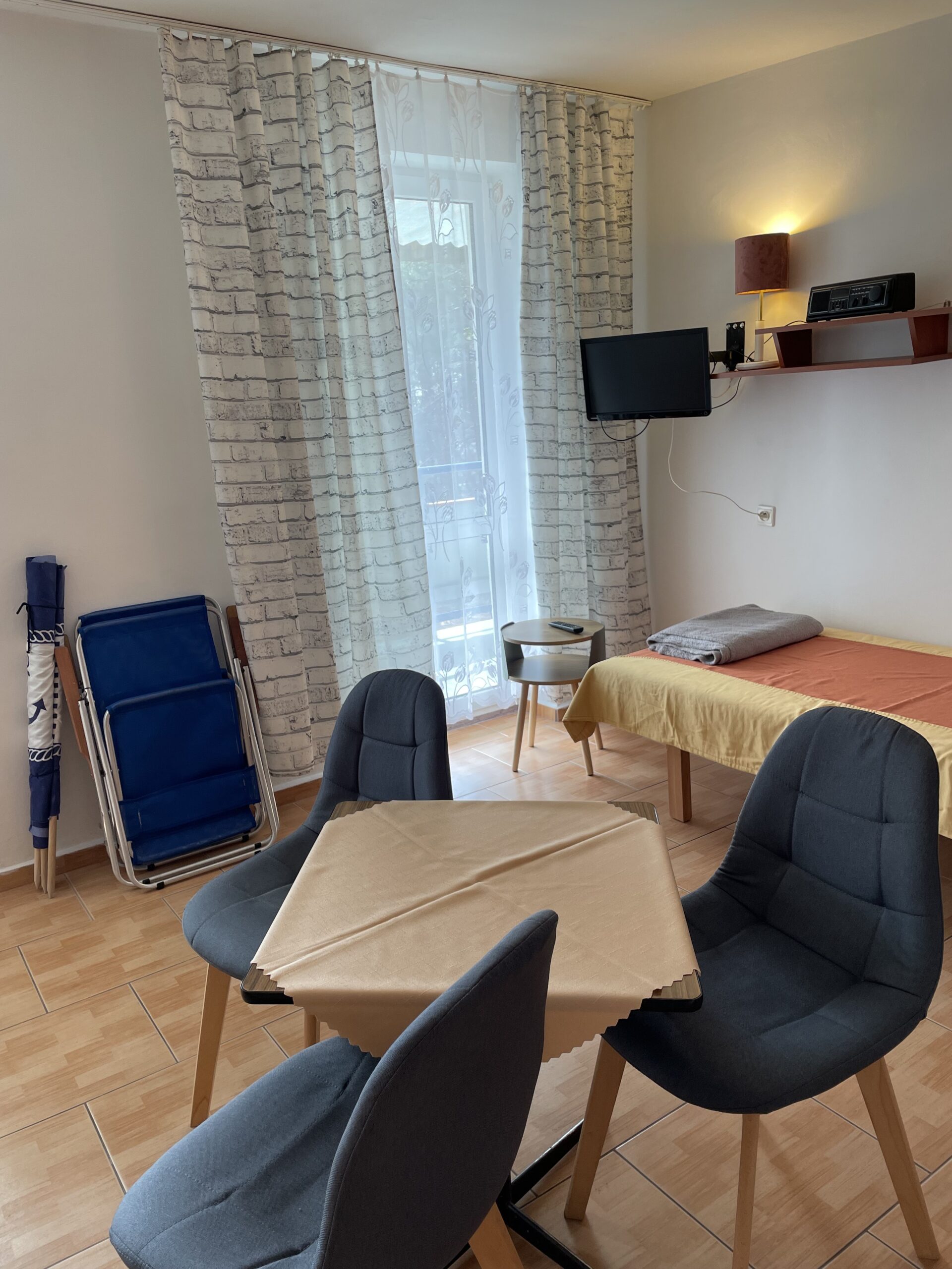- wyposażonie: tv, radio, czajnik bezprzewodowy, lodówka, sprzęt plażowy.